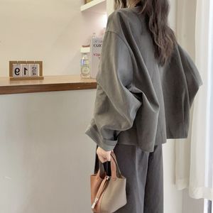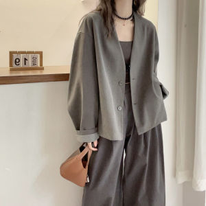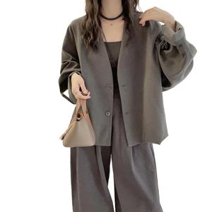 2025早秋新款英伦风领通勤外套女宽松灰色雪尼尔氨纶其他常规
