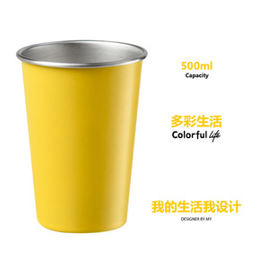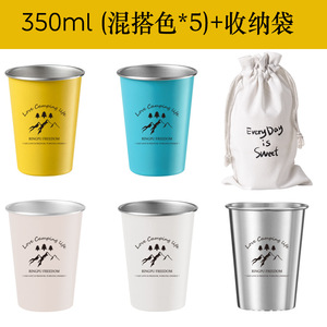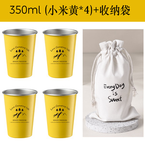 户外露营杯子304不锈钢杯小米黄9色套装便携野营杯直饮杯印刷LOGO