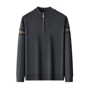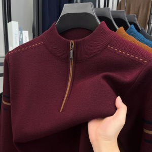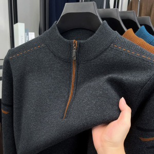 跨境加厚保暖冬季毛衣男2025新款半拉链领外套打底衫针织衫男外贸