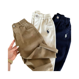 儿童休闲裤2025秋季韩版新品男女童纯色开腰棉布裤宝宝刺绣弹力裤