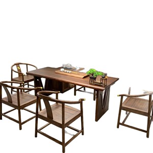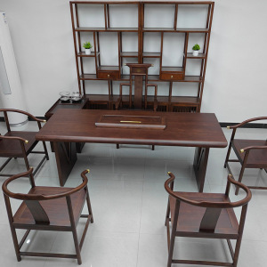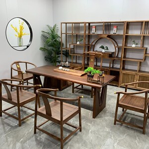 新中式大板实木茶桌茶几原木板工作台整板带烧水壶办公室家用套装