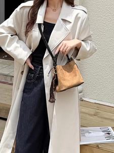 复古磨砂麂皮水桶包编织小托特包2025新款时尚迷你小包单肩斜挎包