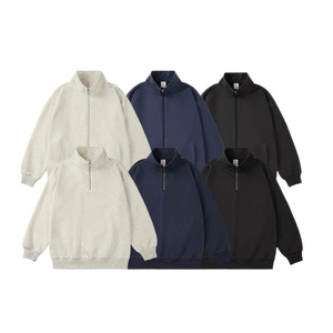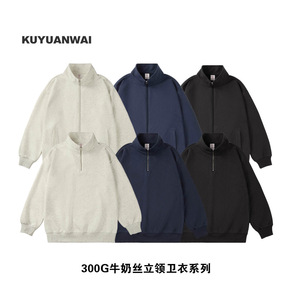 燕麦色宽松300克牛奶丝立领半拉链卫衣男春秋新款休闲长袖上衣