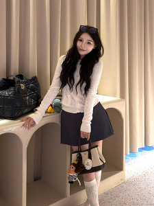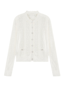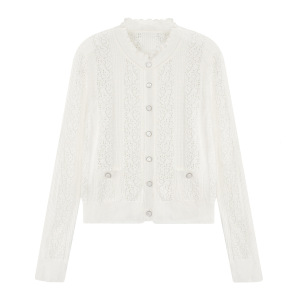 小香风开衫镂空针织圆领外套早秋百搭显瘦木耳边毛衣勾花长袖上衣