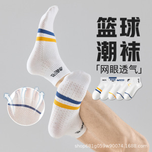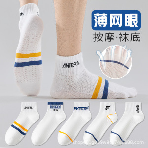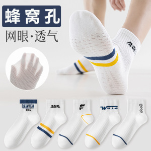 白袜子男夏薄款纯棉防臭7a抗菌吸汗短袜夏季网眼透气新疆棉运动袜