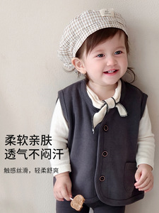 韩版儿童马甲针织背心新款春秋婴儿马夹男女宝宝坎肩洋气纯色上衣