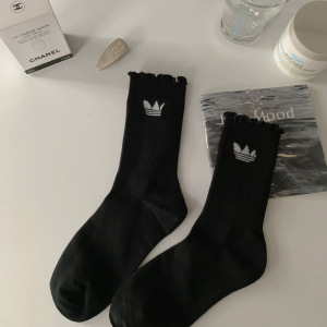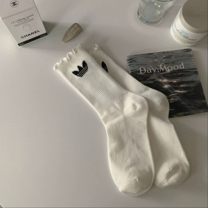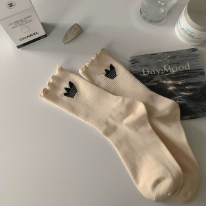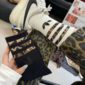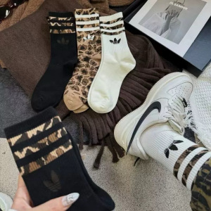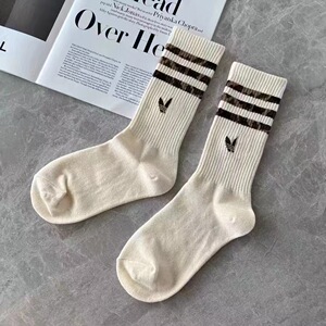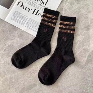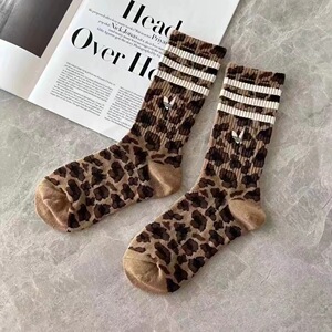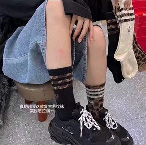 豹纹三杠条纹中筒袜欧货网红款运动袜木耳边袜子女潮幸运草堆堆袜