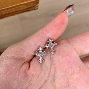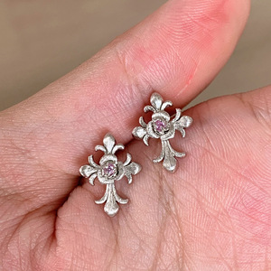 小红书爆款小众设计拉丝粉钻鸢尾花耳钉百搭简约轻奢耳饰一件代发