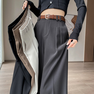 杏色西装阔腿裤女春秋季2025新款高腰高级感垂感百搭直筒休闲西裤