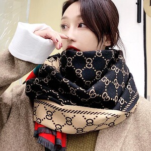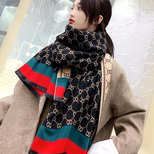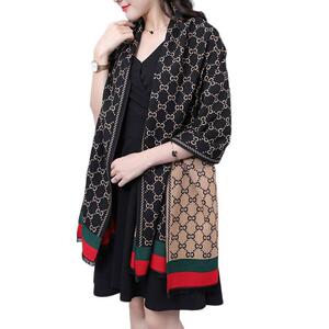 直播爆款围巾女冬季 羊绒混纺大披肩千鸟格流苏保暖字母羊绒围巾