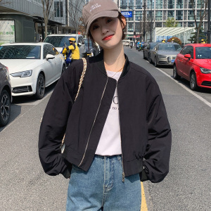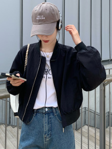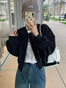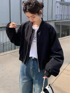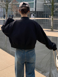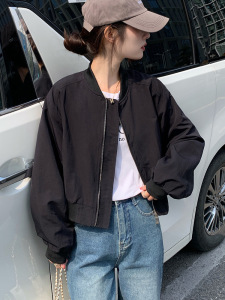 休闲外套女秋季2025新款宽松韩系百搭黑色小个子短款夹克洋气上衣