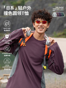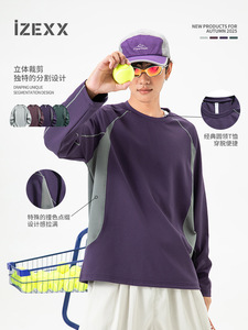 IZEXX潮牌户外防晒吸湿速干运动长袖T恤男秋季抗菌撞色情侣款上衣