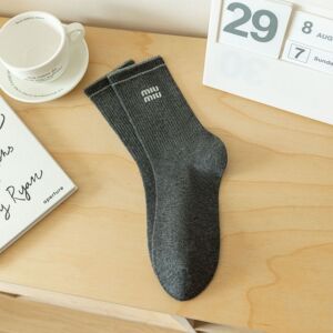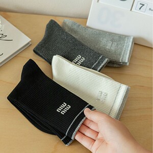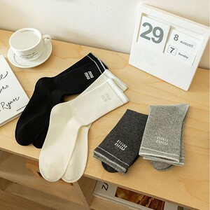 袜子女中筒袜秋冬长袜甜美miu风烫金字母灰色堆堆袜网红百搭潮袜