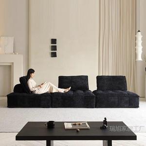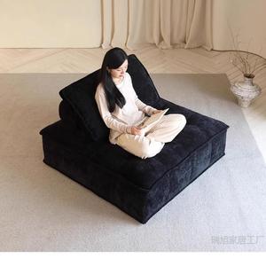 豆腐块布艺沙发现代实木沙发单人模块自由组合黑色雪尼尔懒人沙发