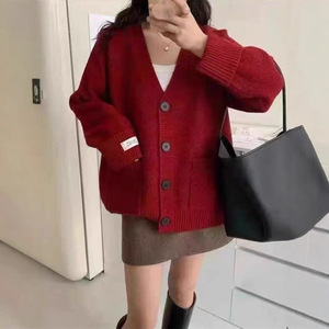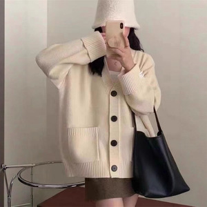 韩范慵懒风毛衣女装早秋冬上衣新款宽松显瘦百搭v领针织开衫外套