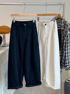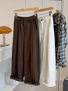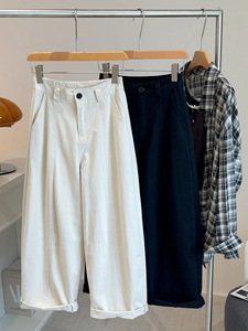 2025早秋新款韩版时尚百搭显瘦高腰直筒阔腿裤女宽松休闲九分裤子