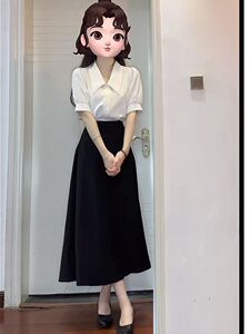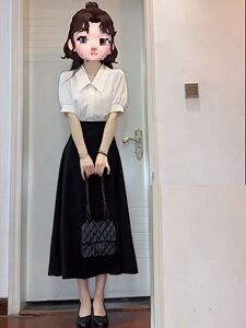 短袖衬衣+黑色裙子