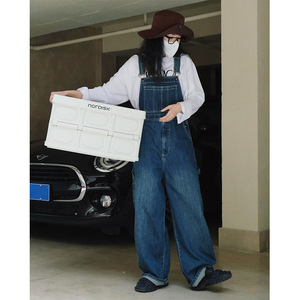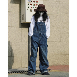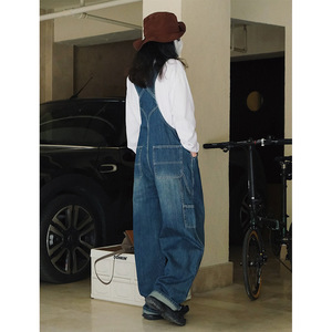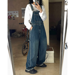 早秋新款复古工装牛仔背带裤可调节肩带宽松阔腿休闲显瘦长裤女潮