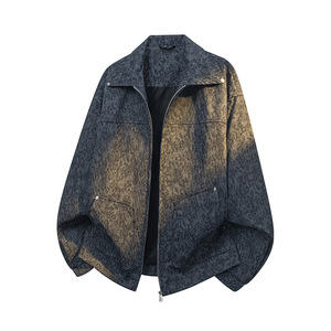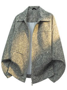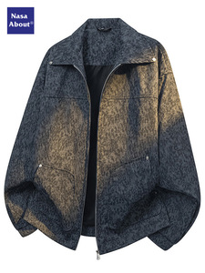 NASA ABOUT美式豹纹翻领夹克男女款复古宽松小众高街休闲春秋外套