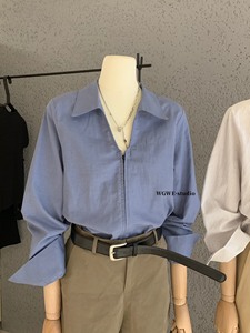 【WGWE】6846洋气拉链正肩衬衫早秋新款高级感休闲宽松显瘦上衣女