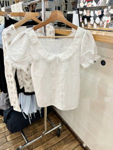 BM风 法式娃娃领白色衬衫bm夏季新款蝴蝶结泡泡袖宽松衬衣上衣女