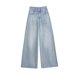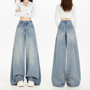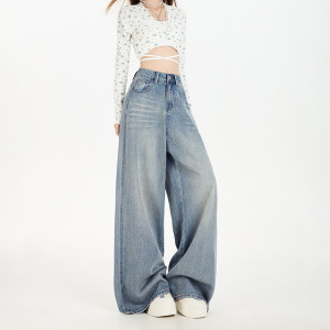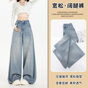 怀旧蓝天丝a字阔腿牛仔裤女夏季2025新款高腰显瘦遮肉垂感拖地裤