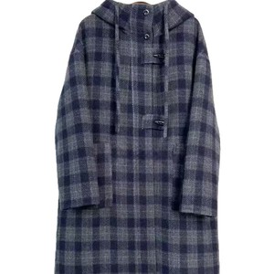 2025秋冬新款韩版宽松蓝格子连帽羊毛外套正品牛角扣双面羊毛大衣