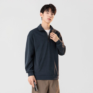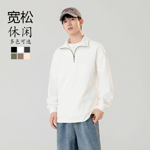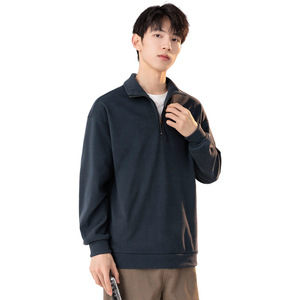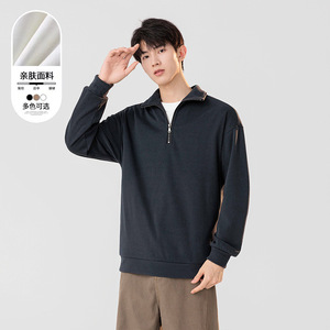 德绒卫衣男2025秋冬新款休闲长袖T恤男半拉链立领双面绒打底衫男