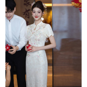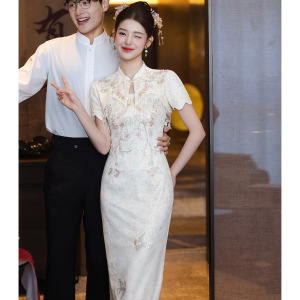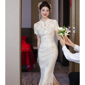 旗袍晚礼服女2025新款新中式订婚连衣裙流苏披肩平时可穿回门便装