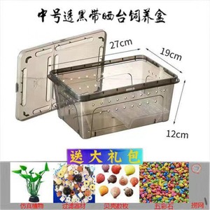 造景乌龟缸带盖乌龟缸带晒台巴西龟饲养箱蝾螈缸角蛙两栖盒养殖缸