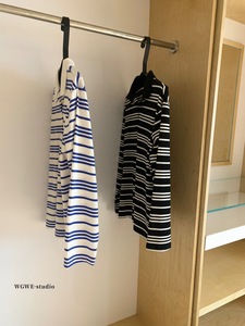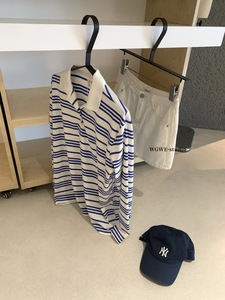 【WGWE】6807早秋新款条纹针织衫polo衫翻领正肩韩版上衣长袖T恤