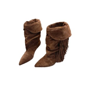 高定新款复古牛翻皮尖头流苏中筒西部靴