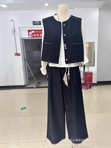 2025港风复古套装牛仔外套阔腿裤三件套外穿ins风废土风时尚百搭
