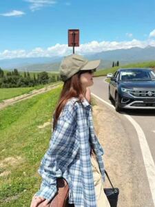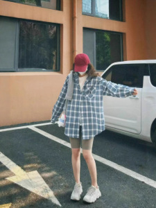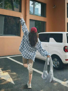 现货RL拉夫提花蓝格纹衬衫休闲宽松小马刺绣小清新慵懒风防晒长袖