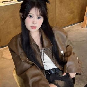 美拉德穿搭棕色皮衣外套女春秋2025新款复古港风机车服短款皮夹克