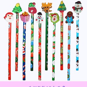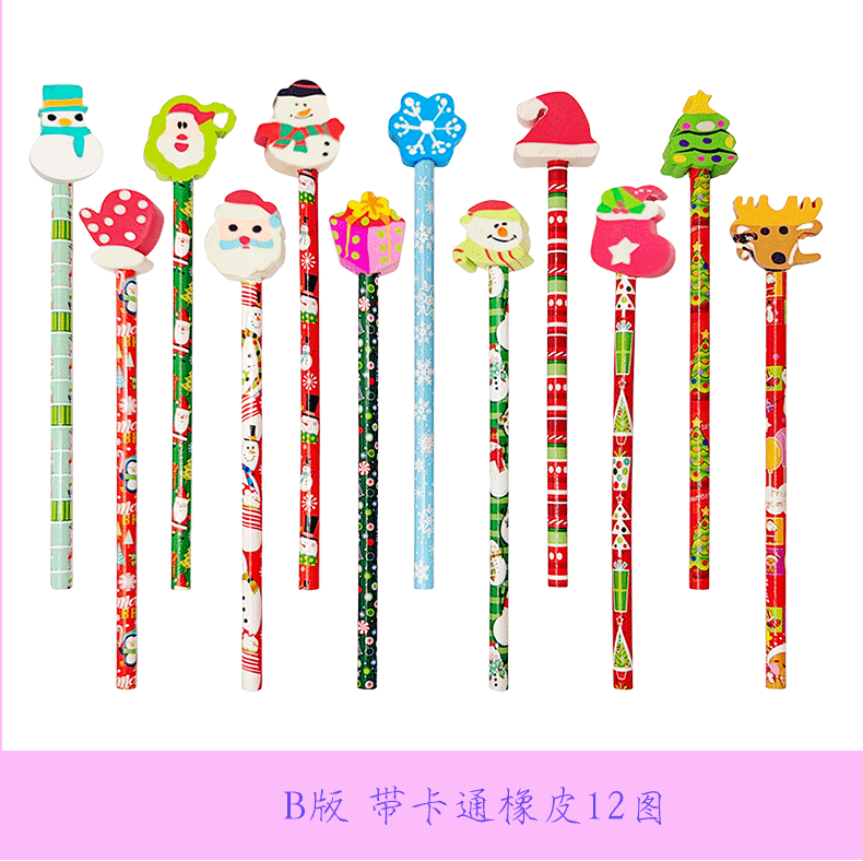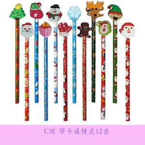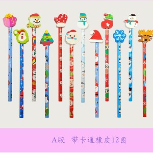 圣诞铅笔绘画卡通橡皮擦学生写字HB铅笔儿童文具素描笔