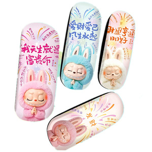 学生近视老花镜眼镜盒雪地小猫翻盖铁盒高颜值多层卡通学生大容量