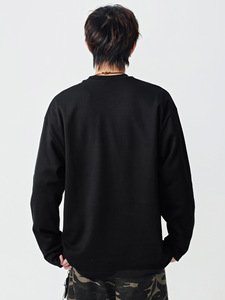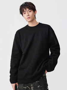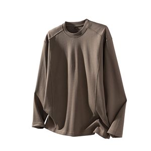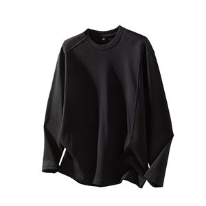 LKTM男装 美式重磅280g立体拼接长袖T恤男宽松简约纯色打底衫上衣