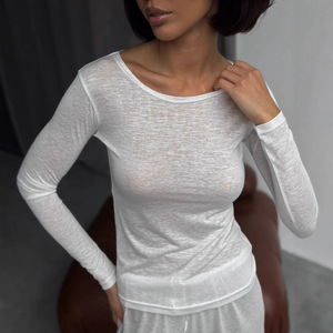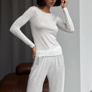 俄罗斯跨境热卖纯色长袖T恤阔腿长裤套装女简约家居服套装两件女