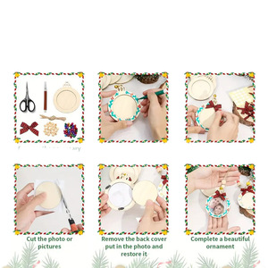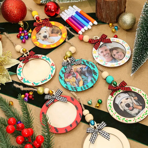 12件套木制圣诞相框装饰品,DIY木质挂饰,圣诞树装饰用相框挂饰
