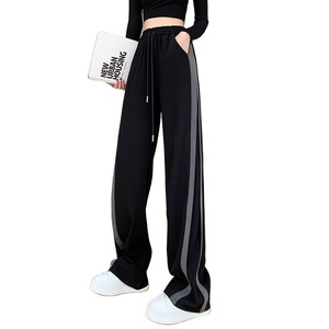 阔腿运动裤女大码胖mm春秋高腰垂感小个子休闲显瘦拼接直筒卫裤子