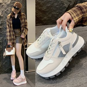 小个子厚底拉链运动鞋女2025新款橡胶底拼色跑步鞋学生街拍阿甘鞋