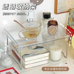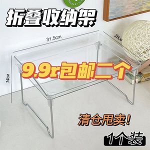 ins风亚克力桌面折叠收纳架茶杯托盘架子叠加多层网红置物架