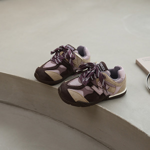 儿童拼色阿甘鞋2025秋新款男女童网面透气软底防滑休闲字母跑步鞋