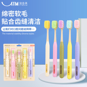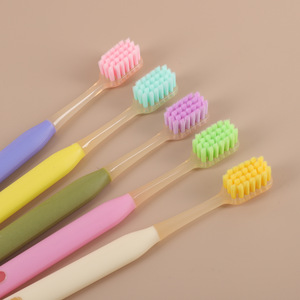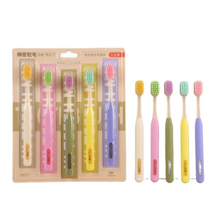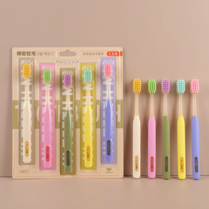 爆款家用成人炫彩软毛牙刷高级家用宽头方孔懒人牙刷五支装批发