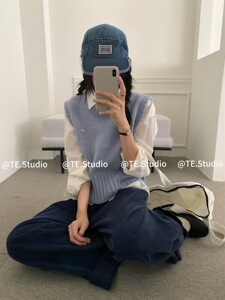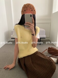 韩系叠穿外搭圆领针织马甲女秋季无袖气质减龄毛衣背心内搭打底衫