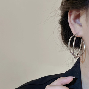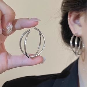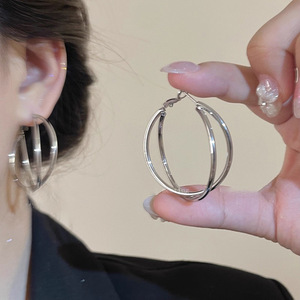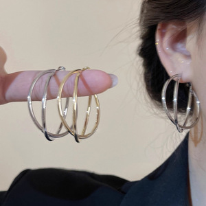 简约双层交叉大耳圈耳环女2025新款爆款显脸小耳钉设计感夸张耳饰
