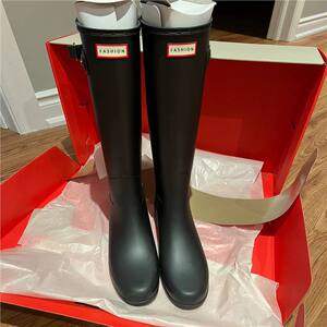 牛皮版~小众真皮厚底骑士靴女冬粗跟红色长靴不过膝高筒靴长筒靴