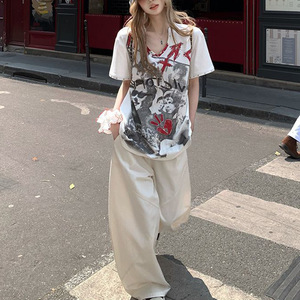 轻亚Y2K美式复古印花短袖T恤女夏季小众设计感宽松辣妹休闲上衣潮
