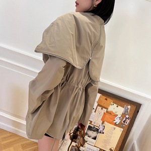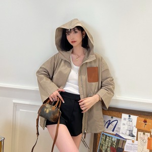 2025秋季款logo徽标连帽抽绳收腰帽子拉链当披肩休闲风衣外套女